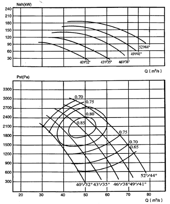 该图为型号为FBCDZ-8-No20C的安运主扇风机曲线,其转速为740转/分