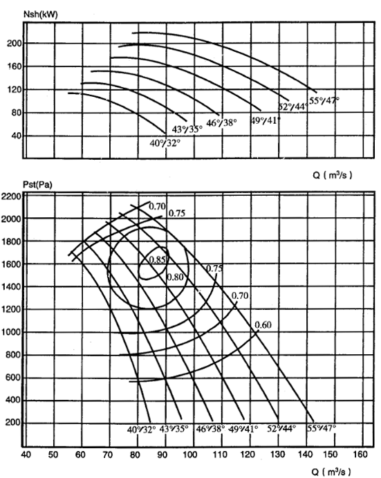 该图为型号为FBCDZ-10-No24B的安运主扇风机曲线,其转速为580转/分
