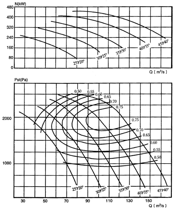 该图为型号为FBCDZ-12-No30D的安运主扇风机曲线,其转速为490转/分