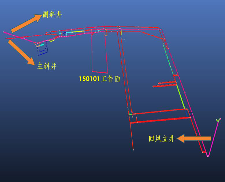锦辰煤业三维可视化模型是由“众信通团队”2015年11月份完成,本次对矿井进行了详细的测量,使模型达到指导实际生产的作用。