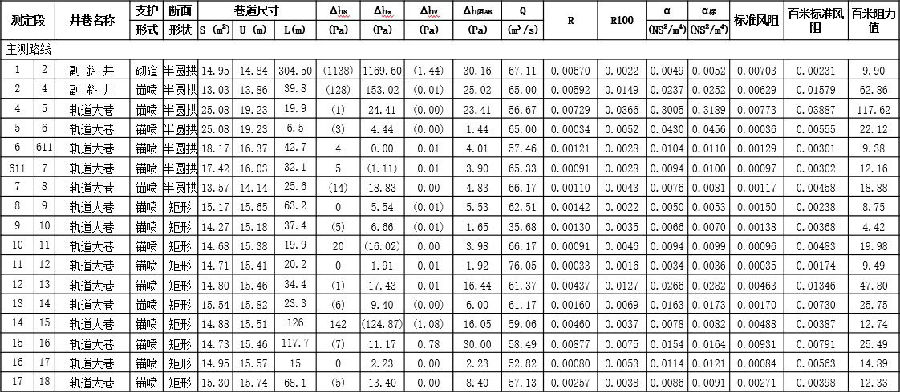 将这些实测数据,用excel表格处理出来得到我们需要的巷道属性,输入模型。