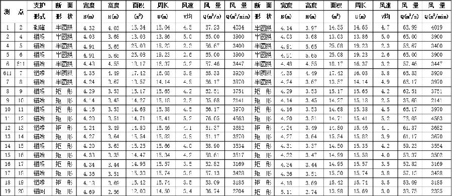 以下为部分巷道测量真实数据,如有误差,敬请见谅。