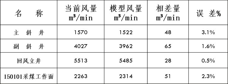 经过以上对比可以看出,矿井主要进回风井与实际风量偏差不大,主通风机风量及负压等整体误差率<5%,与实际情况基本吻合,可以满足生产需要,能够准确的进行模拟和预测。更多详细情况可参考模型锦辰2015.11.20.vsm
