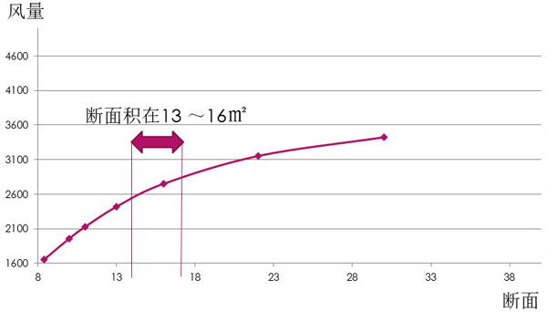 d.可知,扩断面在13 ㎡~16㎡为宜。