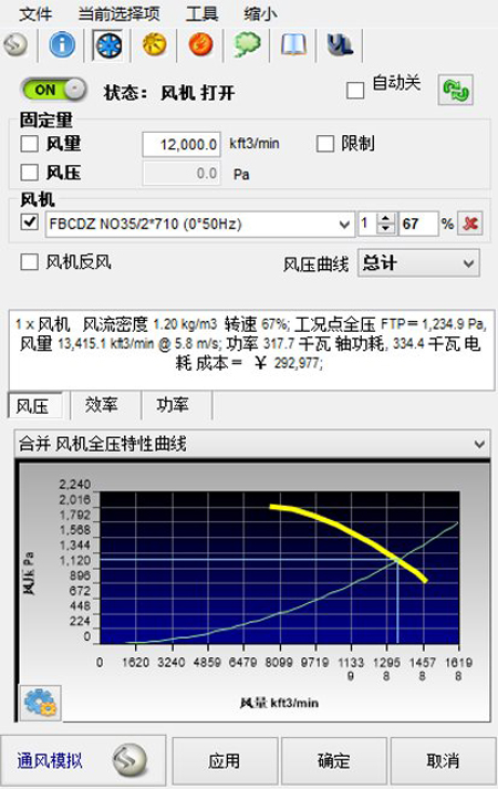 c.鉴于15#煤总进风量减少,而新回风立井主通风机负压、功率下降,可以适当的调节主通风机,增加排风量满足双层煤用风。