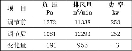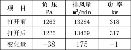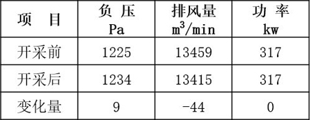 b.重新打开原主斜井,主通风机前后参数变化不大,运行稳定;