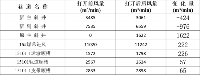 a.重新打开原主斜井,新副斜井和新主斜井的进风减少,而原主斜井的进风大于减少量,15#煤的总进风增加;