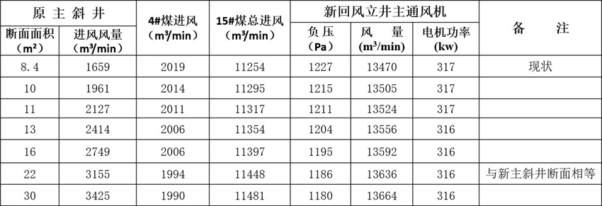 c.重新打开原主斜井,使得整个矿井的进风更加容易,并且可以适当降低矿井负压,增加总进风量。